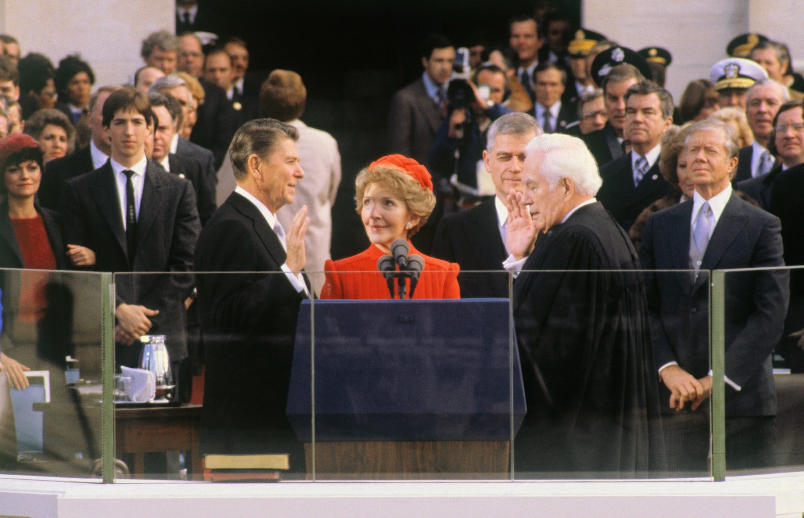 Reagan had a resounding victory in 1980 and was sworn in on January 21st, 1981, along with George H.W. Bush as Vice President.